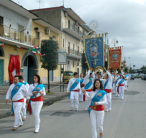 Sono sceso e scendo ancora in strada per osservarli. Ho incontrato folle di persone, organizzate in paranze, gruppi composti quasi sempre  di giovani donne, uomini, ragazzi e  bambini di cinque – sette e dodici anni, stretti tra loro con le  braccia interconnesse sul collo. Altri fedeli procedono carichi di un voluminoso e pesante cero decorato, correndo verso il Santuario. Parecchi  hanno sulle spalle la propria figlioletta/o, per raccontare, visivamente, la loro fede. Spesso, questi piccoli cortei sono preceduti da un gruppetto di suonatori che rimescola suoni ed echi di danze popolari miste a marcette militari e, cosa strana, la tromba ripete  il ritornello della canzone del Piave: «…il Piave mormorò, non passa lo straniero». Ho incontrato qualche ex alunno e qualche genitore ed al mio saluto hanno risposto di trovarsi là, per ringraziare la Madonna per un dono ricevuto. La folla procede lentamente ed attende, a volte molte ore, per entrare in Santuario ed esprimere, nel proprio modo, l’amore alla Madonna. L’osservarli con rispetto mi ha permesso di scoprire: chi sono e perchè si chiamano così.