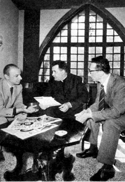 La vita dei cattolici nei Paesi a regime comunista è diventata una guerriglia spirituale. Padre Werenfried van Straaten (al centro nella foto) ha vissuto per alcuni giorni la loro vita. Riportiamo brani del racconto che egli ci ha fatto di un suo incontro con un vescovo cattolico in uno Stato d’Oltrecortina.