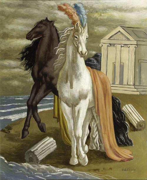 Un piccolo grande viaggio metafisico, tout court. Se si vuole, sotto certi aspetti, anche “spirituale”, in senso lato. I cavalli dechirichiani evocatori del mito e della forza, i “buchi e i tagli” di Fontana, le astrattezze di Sironi, il surrealismo di Savinio e così via, formano altrettante tappe di un itinerario che, lo si capisce percorrendolo, punta all’immortalità.
