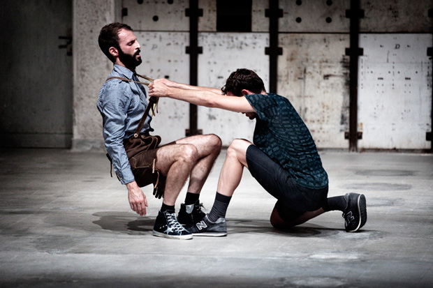Evolve la ricerca creativa di Alessandro Sciarroni, originale «performance artist» (è sua la definizione) che, con Folks Will You Still Love Me Tomorrow?, torna alla danza usando quella popolare, nello specifico quella tirolese, come indagine sulla tradizione. Sceglie un faticosissimo ballo bavarese, lo Schuhplattler, caratterizzato dal battere continuo dei piedi e dalla percussione delle mani sulle scarpe e sulle gambe. È il concetto, per Sciarroni, del ballo come regola, dittatura, flusso di movimenti incessanti che seguono il ritmo e la forma, non il contenuto. «La forma è ritmo, è energia che viene percepita attraverso le orecchie, non gli occhi». In questo loop di gesti percussivi, con sincronicità e rigore i sei danzatori, sempre sorridenti, lo eseguono con variazioni disturbanti e intermittenze musicali, fino allo sfinimento. Una prova di resistenza che chiama in causa anche il pubblico. La danza, infatti, continuerà ad essere eseguita «…finché rimarrà un solo spettatore in platea o un solo danzatore sul palco». È questa la sfida che viene annunciata ad apertura dello spettacolo che potrà durare anche ore. E così avverrà. Tra defezioni e resistenze chi riuscirà a resistere farà un’esperienza inusuale che va oltre il senso della provocazione e della nozione di visione.