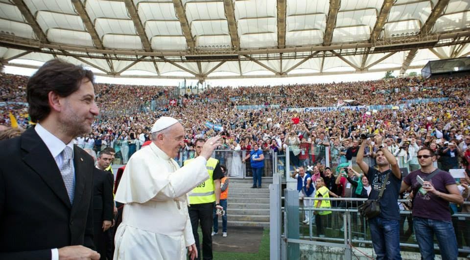 E dicevo che se ne è anche “servito”, nel senso più nobile e provvidenziale del termine, perché con la sua presenza e azione allo stadio, papa Francesco ha voluto ricordare alla Chiesa che “la corrente di grazia” del Rinnovamento carismatico è immagine stessa della Chiesa che si rinnova, che vive dell’unzione che viene dallo Spirito più che delle funzioni e di organizzazione. Una Chiesa che nasce e rinasce sempre nella grazia della Pentecoste e dei carismi dello Spirito. Per questo sostengo che l’evento ci ha superato negli esiti: la co-essenzialità nella Chiesa dei due profili gerarchico e carismatico, con Francesco non sono più solo in dialogo fecondo, ma si fondono, appaiono l’uno nell’altro. E ciò dovrà potere avvenire sempre per ogni componente della Chiesa. Il papa stesso si è posto come un animatore carismatico, mostrandoci cos’è l’adorazione dello Spirito Santo quando si è posto in ginocchio dinanzi al mondo intero. Dunque, pensando alla diffusione dei carismi e alla nuova evangelizzazione sostenuta dallo Spirito Santo, la Convocazione di Roma rappresenta un regalo grandissimo che tutti i movimenti ecclesiali ricevono.