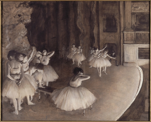 C’è un senso di timor cosmico che è tipico di tanta arte impressionista. La quale tende a qualcosa di sapore metafisico. Può essere l’incantesimo chiaroscurato di Degas nella “Prova di un balletto sulla scena”, con qualcosa di fatato bianco e di nero sfuggente sulla scena, o il Vaso blu di Cézanne del 1890, dove le cose e i fiori sono colore carnoso, epifania vitale della bellezza del solo esistere. E l’uomo? È lo spettatore assente-presente.