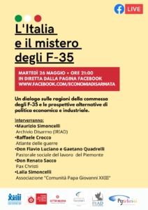 Da queste ragioni nasce la proposta dell’incontro del 26 febbraio 2020 alle ore 21, su web “L’Italia e Il mistero degli F35” dedicato all’emblematica commessa dei caccia bombardieri che coinvolge il nostro Paese e le reali prospettive alternative di politica economia e industriale.