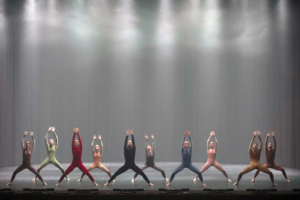 È un intreccio corale di danza, tra pose statiche subito mosse da gesti istintivi, energici o quieti. Sono mani a ventaglio, sfarfallanti sopra la testa e in avanti, che sembrano sporgenze, becchi e piume; braccia aperte in tutte le direzioni; gambe piegate, dinoccolate, in tensione; busti inarcati e ruotanti; volti che guardano oltre, che aprono la bocca, fanno versi e sgranano gli occhi; piedi che sono zampe da flettere, da intrecciare, da sollevare.