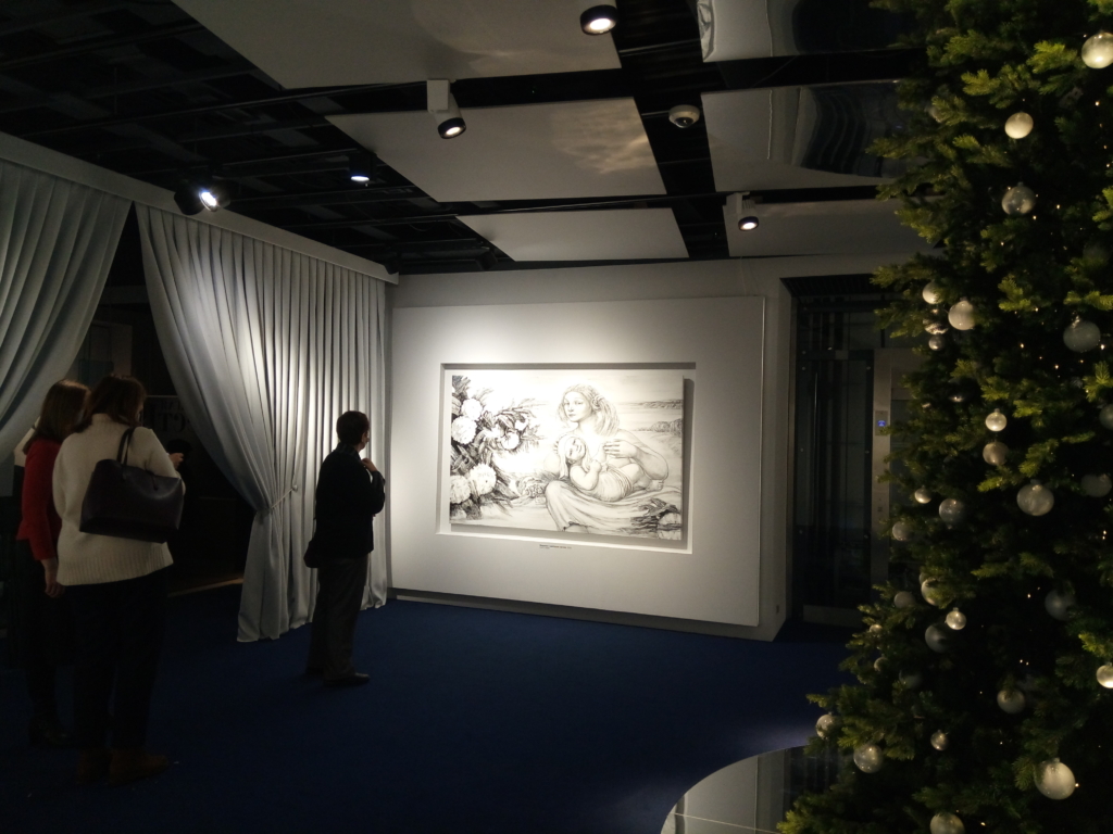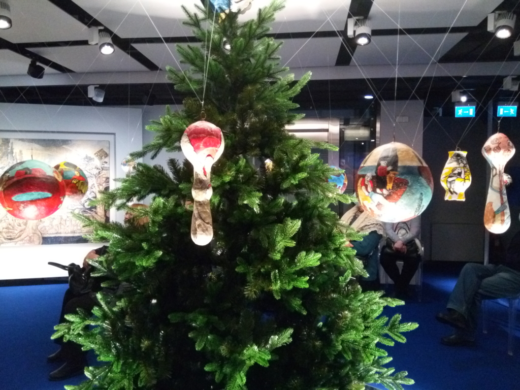 L’idea dell’esposizione è venuta durante le feste di Natale e Capodanno per dare agli spettatori la possibilità di lasciare dietro la cortina della mostra tutto ciò che è difficoltoso ed entrare in un mondo di bellezza e armonia. Proprio per questo, l’elemento comune è l’albero di Natale che si trova al centro e non si vede dove inizia ma continua in tutti e tre i piani della mostra. Tatiana Cernova ha preparato anche un originale addobbo: palle fatte con la tecnica del Papier-Maché sui quali sono rappresentati motivi tratti dai lavori esposti.