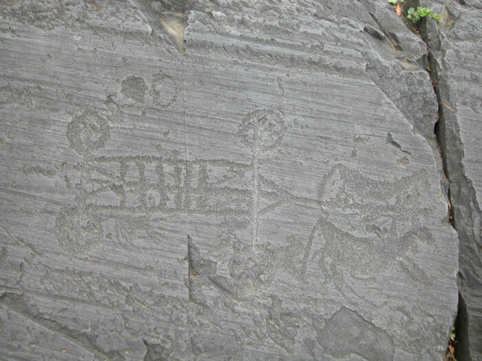 Roccia 23 Parco nazionale di Naquane nel sito Unesco dell’Arte rupestre della Valcamonica (Età del ferro). Figura del carro a 4 ruote trainato da cavalli. Foto Credit Ministero della Cultura.