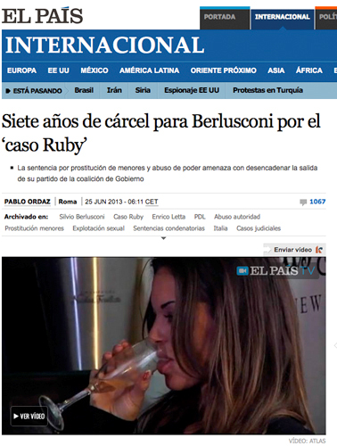 Almeno per una volta, qualcuno dirà, i media stranieri non hanno infierito troppo: a parte poche eccezioni, i titoli della stampa estera sulla condanna a sette anni per Silvio Berlusconi nel processo Ruby sono discretamente asciutti e aderenti ai fatti. Il New York Times, nell'articolo Berlusconi condannato a sette anni per una vicenda a sfondo sessuale, si limita a considerare come «il caso, come tutto ciò che riguarda Berlusconi, ha diviso l'Italia», e a sottolineare i rischi che la sentenza pone per il governo Letta; considerazioni spinte oltre dal Los Angeles Times, che osserva come «le sue crescenti preoccupazioni legali potrebbero spingerlo a togliere il sostegno al governo e andare ad elezioni perché, se dovesse vincere, sarebbe in una posizione più favorevole per far passare delle leggi che gli garantiscano l'immunità».