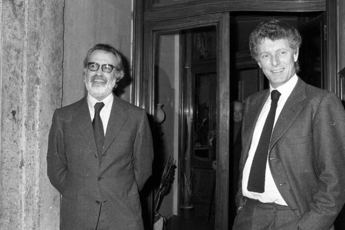 Eugenio Scalfari e l’editore Carlo Caracciolo a Roma, Italia, 2 febbraio 1977. ANSA/OLDPIX