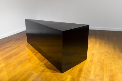 "Direzione" è un prisma a base triangolare rivestito di fòrmica nera, sulla cui faccia superiore è inserita una bussola. Grazie alla presenza dell’ago magnetico, l’opera si presenta come un dispositivo capace di auto-determinare il proprio orientamento nello spazio.