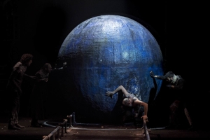 C’è un furore ancestrale, un magma ribollente di voci e suoni e canti e parole declamate, sussurrate, gridate, che fuoriescono come schegge incandescenti e bruciano corpi e anime, dissotterrano storie e ricordi di perdite e di morti, di vivi senza tempo, in un presente che sembra senza passato né futuro. E sono incubi quelli che accomunano uomini e donne, padri e figli e madri, fratelli e sorelle, di una comunità straniera e parentale senza più sentimenti né comunanze, che si fronteggia dentro un mondo arcaico, primitivo, barbaro, dominato da un pianeta precipitato sulla scena, scagliato su un’umanità alla deriva senza più civiltà, risucchiato nel vuoto delle coscienze e della memoria, e sovrastato, a tratti, dalle grandi ali di un grifone senza testa.