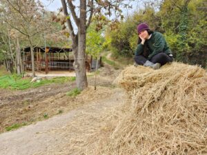 Abbiamo un piccolo gruppo di animali, che custodiamo e alleviamo curandoli come si deve, quindi abbiamo il pascolo libero in rotazione. A seconda dei diversi periodi dell’anno abbiamo un latte che rispecchia il territorio e le stagioni che viviamo qui in collina. Abbiamo un piccolo caseificio aziendale all’interno del quale trasformiamo solo ed esclusivamente il latte delle nostre vacche brune alpine, al momento ne abbiamo tre, con un toro felice perché può godere di tanta compagnia. Gli altri animali sono qui in masseria per biodiversità, perché penso e credo fortemente che l’anima di un posto come un’azienda agricola passi attraverso gli animali che lo abitano. Quindi abbiamo capre, pecore, galline, conigli, cavalli, maiali, da qualche giorno anche delle tartarughe, e sono loro che tengono vivo questo posto e danno anima a questa collina.