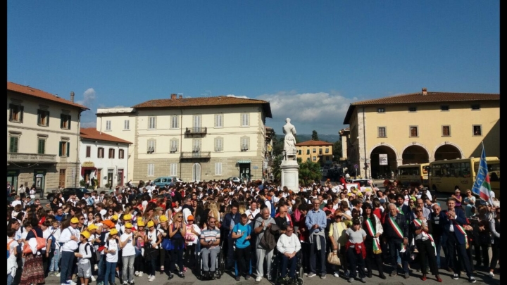 Nella memoria di Francesco d’Assisi 1.500 studenti hanno fatto la marcia “Armonia for peace”, per la pace e l’armonia tra i popoli, andando da Montecatini a Monsummano, nel cuore della Valdinievole. Hanno marciato con i loro professori e maestri, sindaci e amministratori, danzando la pace in mitezza, gioia e festa. Un corteo di gonfaloni e bandiere per rappresentare il multiforme mondo della pace.