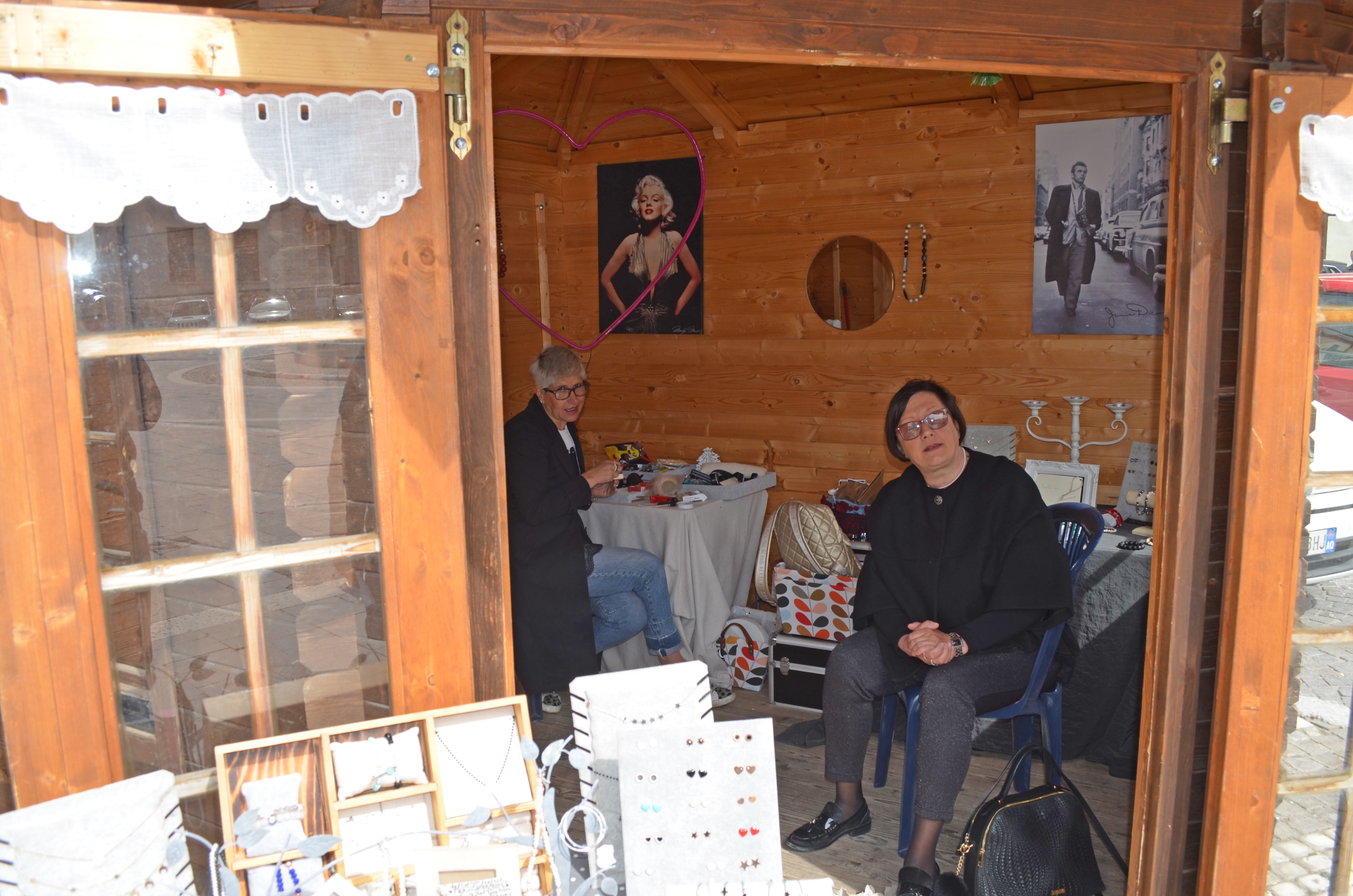 A sinistra, Marzia, artigiana dell’Aquila. A destra Annarita Attardi, Unicef.