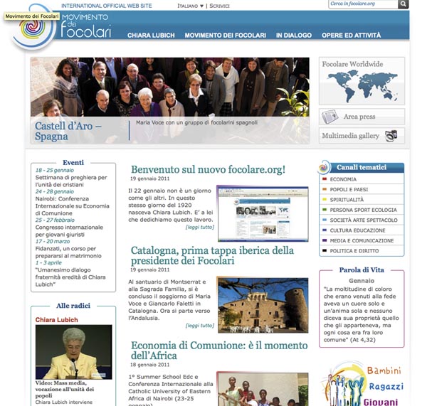 Dunque è partito: il 22 gennaio, data in cui si ricorda la nascita di Chiara Lubich, il sito internazionale completamente rinnovato ha debuttato in Rete. Sette lingue, notizie e news dal mondo, aree dedicate …