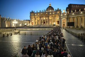 Piazza San Pietro persone in fila per saluto a papa Francesco ANSA/ALESSANDRO DI MEO
