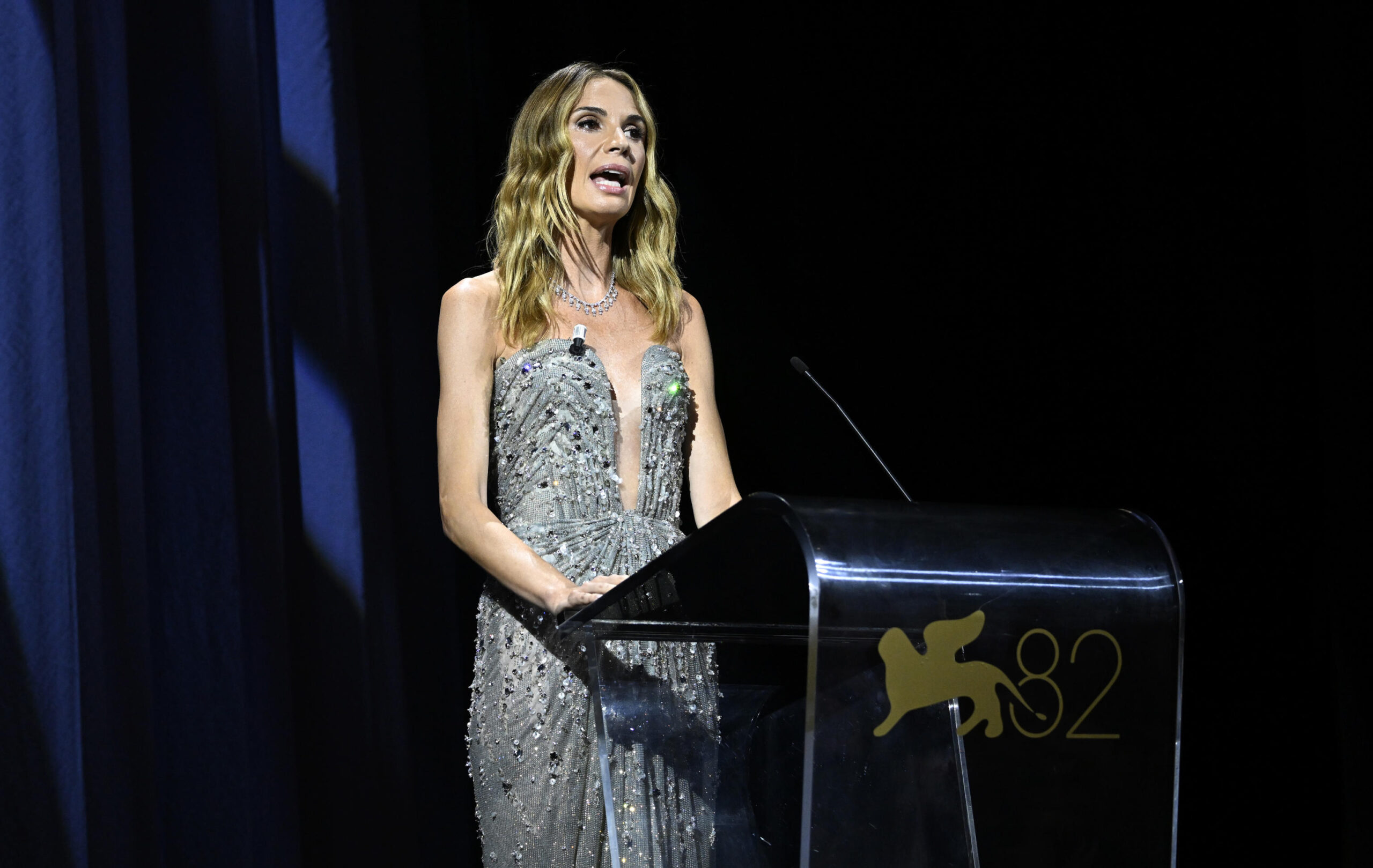 Emanuela Fanelli madrina del Festival del cinema di Venezia 2025. ANSA/RICCARDO ANTIMIANI