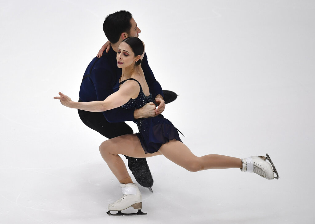 Deanna Stellato-Dudek e Maxime Deschamps durante i Campionati di pattinaggio ISU Four Continents a Tallinn, in Estonia, sabato 22 gennaio 2022. Foto AP/Sergei Stepanov.