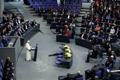 Benedetto XVI al Parlamento tedesco, nella recente visita in Germania, ha insistito fortemente sulla necessità del dialogo tra le diverse correnti che hanno costruito l’Europa. Ha detto: «La cultura dell’Europa è nata dall’incontro tra Gerusalemme, Atene e Roma – dall’incontro tra la fede in Dio di Israele, la ragione filosofica dei Greci e il pensiero giuridico di Roma. Questo triplice incontro forma l’intima identità dell’Europa. Nella consapevolezza della responsabilità dell’uomo davanti a Dio e nel riconoscimento della dignità inviolabile dell’uomo, di ogni uomo, questo incontro ha fissato dei criteri del diritto, difendere i quali è nostro compito in questo momento storico». Benedetto XVI parla di giustizia, di politica, di diritto, riconoscendo l’influenza che le diverse tradizioni hanno avuto nella costruzione dell’Europa, grazie proprio al loro «incontro».
