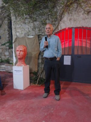 La scultura, “Il grido della mamma palestinese” colpisce per la forza drammatica che emana. Interamente realizzata in un rosso acceso – simbolo di sangue e dolore – l’opera raffigura una madre nel gesto disperato di un grido lacerante. Il volto contratto dal dolore racconta la tragedia di una maternità ferita, impotente davanti all’orrore della guerra. La madre palestinese è l’archetipo di tutte le madri travolte dalla violenza, dal lutto, dalla perdita, ingiusta e ingiustificata. Non chiede interpretazione, ma ascolto. Attenzione.