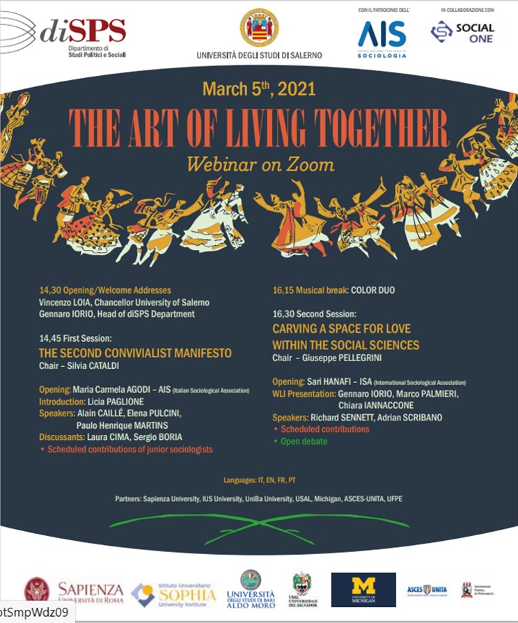 Queste e altre domande verranno affrontate nel convegno dal titolo “L’arte di vivere insieme”, che si terrà in video conferenza il prossimo 5 marzo, ospitato dall’Università di Salerno e in collaborazione con numerose università e centri di ricerca tra Brasile, Argentina, Stati Uniti e Italia.