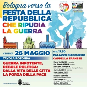 Una scelta di dissenso dalla linea prevalente adottata dal Pd senza soluzione di continuità dalla segreteria di Enrico Letta a quella attuale di Elly Schlein. Altre voci di dissenso si sono espresse con la mancata presenza in aula o l’astensione. Quella di Paolo Ciani è quindi una posizione singolare che lo porta ad essere anche l’unico parlamentare ad intervenire alla manifestazione del 26 maggio a Bologna promossa come ogni anno dalle associazioni riunite nel “Portico della Pace” per la “festa della Repubblica che ripudia la guerra”. Oltre al segretario di Democrazia Solidale, interverranno tra gli altri anche il cardinale di Bologna Matteo Zuppi, investito da papa Francesco nell’iniziativa di pace in Ucraina, e Marco Tarquinio che da quando ha lasciato la direzione del quotidiano Avvenire, espressione della Cei, è ancora più attivo nei dibattiti e nel sostegno alle iniziative per fermare l’escalation bellica nel centro dell’Europa. Nella tavola rotonda organizzata per il 26 maggio a Bologna con il titolo “Guerra impotente, debole politica. Dalla vita delle città la forza della pace” si chiede a Paolo Ciani di parlare delle “armi della politica”.