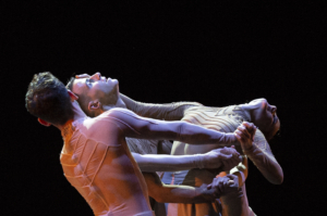 “Elegia” di Enrico Morelli si pone, invece, nel nostro tempo marcato dal malessere della solitudine e dello smarrimento che l’epoca pandemica ha acuito. Sentimenti da guarire col prendersi cura dell’altro, del gesto che tocca e avvicina, della memoria che ritrova lo slancio dell’incontro dopo il timore dei sensi. È tutto leggibile nelle belle sequenze dall’afflato poetico che l’ispirata coreografia di Morelli disegna sui corpi degli otto danzatori, nel loro comporsi in gruppi e in duetti immersi inizialmente in una nebbia, poi diradata mentre riecheggiano parole che ne scaldano i gesti. I versi poetici sono quelli di Mariangela Gualtieri, chiare nel loro timbro semantico scandito in apertura di sipario, quindi alterate all’inverso e reiterate in una partitura musicale elaborata dal compositore elettronico Giuseppe Villarosa: un tappeto sonoro sul quale vibrano le luminose posture dei danzatori, impreziosite dai semplici costumi di Nuvia Valestri e dalle luci di Carlo Cerri che ne sagomano i movimenti. A inframmezzarli è, prevalentemente, il “Concerto n.1” per pianoforte e orchestra in Mi minore di Chopin, con le sue note romantiche che i corpi restituiscono nel loro onirico plasmarsi dando forma a quell’atto che sempre più accoglie, dà sicurezza, cattura con leggerezza, alita il respiro ritrovato, solleva l’altro, fino a farsi atto corale, catena umana che infine, sotto la volta di un cielo stellato, riaccende la speranza di ritornare a pulsare insieme. Bravi gli smaglianti interpreti della compagnia MMCDC, per il rigore e la qualità della danza che esprimono.