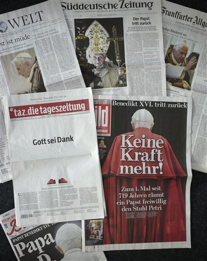 «Noi eravamo il Papa»– così potremmo variare lo slogan "Noi siamo il Papa" col quale il più diffuso tabloid tedesco Bild aveva annunciato l’ elezione di Joseph Ratzinger il 20 aprile 2005.  Dopo la notizia della rinuncia, prima le reazioni di incredulità fra i cattolici e di grande sorpresa fra tutti, poi affermazioni di rispetto da tutte le parti del mondo, anche da quelli che in genere si pronunciano contro tutto ciò che proviene dal Papa.