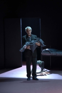 Lo struggente canto «Lascia ch’io pianga la cruda sorte» dal Rinaldo di Händel, apre – e chiuderà – lo spettacolo, mentre cade della cenere depositandosi sulla scena, segno dell’avvenuta distruzione della città. Ad avviare la vicenda delle Troiane è Ecuba (una Elisabetta Pozzi di dignitoso strazio scolpito a tutto tondo nel suo blocco tragico) che entra con una valigia in mano e, avanzando in proscenio, si accascia per poi pronunciare quelle battute iniziali: «Dobbiamo alzare la testa…», parole che sono la chiave di lettura del regista: «…se vogliamo trovare uno spiraglio, un fiato di speranza oggi».