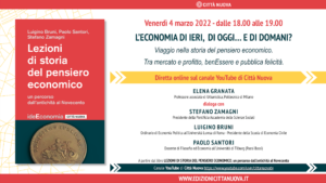 Venerdì 4 marzo alle ore 18.00 in diretta sul canale youtube di Città Nuova un viaggio nella storia del pensiero economico.  Dalla viva voce di Luigino Bruni, Stefano Zamagni e Paolo Santori. Modera Elena Granata.