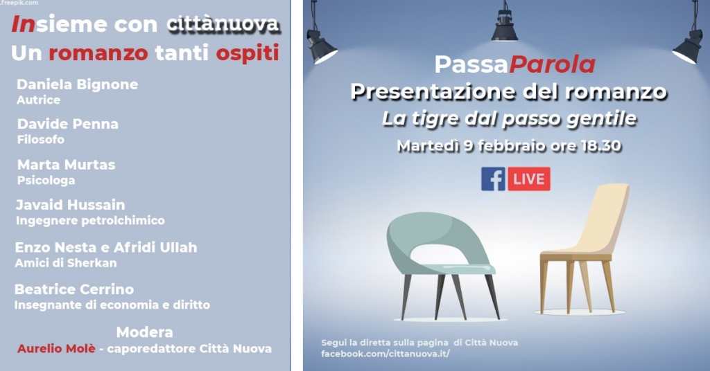 Presentazione del romanzo La tigre dal passo gentile. Un viaggio spietato e disumano. Un giovane uomo afghano, dal portamento regale e dai modi gentili, alle prese con un passato tutto da dimenticare e un futuro ricco di incognite. È la storia vera di Sherkhan, in viaggio dall’Afghanistan all’Italia. La presentazione online è martedì 9 febbraio alle ore 18 e 30 sulla pagina Facebook di Città Nuova. Intervista all’autrice Daniela Bignone. Rivedi la diretta.