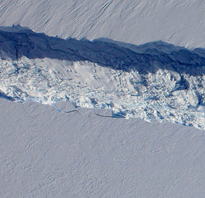 Immagine di una lunga spaccatura nel ghiaccio, tratta dal sito web della NASA (NASA / ANSA)