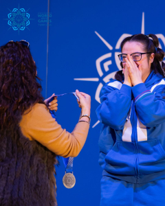 Sabrina Piras ai Giochi Mondiali Invernali Special Olympics Torino 2025. Foto: Giochi Mondiali Invernali Special Olympics