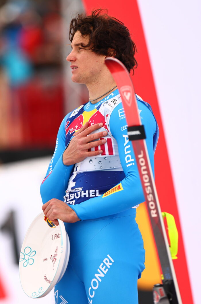 Il classe 2004 di Manerba sul Garda, al secondo successo della carriera – a soli 8 giorni dalla vittoria nel superG di Wengen – commenta così la sua impresa: «Questo è davvero un sogno, sto tremando dall’emozione. Per me è stata una giornata speciale: in partenza avevo in mente Matteo Franzoso perché l’anno scorso condividevamo la stessa camera e per me era la prima volta qui – dice l’azzurro ricordando l’amico –. Ho pensato subito che fosse il momento giusto per dedicargli ‘La Gara’, perché questa è la gara che tutti vogliono vincere. Non so bene come abbia fatto, è stata la miglior dedica che potessi fargli. Non tutti possono vincere a Kitzbuehel, io ce l’ho fatta».
