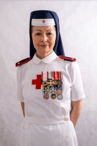Ho iniziato a far parte del corpo delle infermiere volontarie nel 1990 e ho fatto il corso insieme a mia figlia, anche lei infermiera. Poi mia figlia è venuta a mancare per un tumore raro e io ho continuato capendo anche la sofferenza degli altri, perché il dolore e la sofferenza è tanta nel mondo, e io la potevo capire e potevo aiutare chi ce l’aveva, perché i migranti sono molto sofferenti, specialmente i bambini. Ho portato avanti questo impegno dedicandomi totalmente alle persone bisognose. Lo faccio anche in nome di tutte le Sorelle, di tutte le Crocerossine che svolgono questo volontariato con molta dedizione e molta serietà.