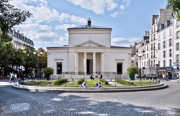 Eccoci giunti a Place du Docteur Félix Lobligeois tranquilla e senza pretese, ben lontana dalle magnificenze della Ville Lumière. Subito vi riconosciamo la chiesa del film, la sua facciata neoclassica che domina la piazza. Prima però di entrare, seguendo l’esempio di Andreas, facciamo una puntata nel vicino bistrot dove più d’una volta il nostro clochard ha atteso la fine della messa domenicale trincando abbondante Pernod da solo o con l’amico beone che gli ha soffiato i duecento franchi. In questo stesso locale, pochi minuti prima di morire, ha avuto luogo il suo ultimo colloquio con la misteriosa fanciulla scambiata per la santa di Lisieux.