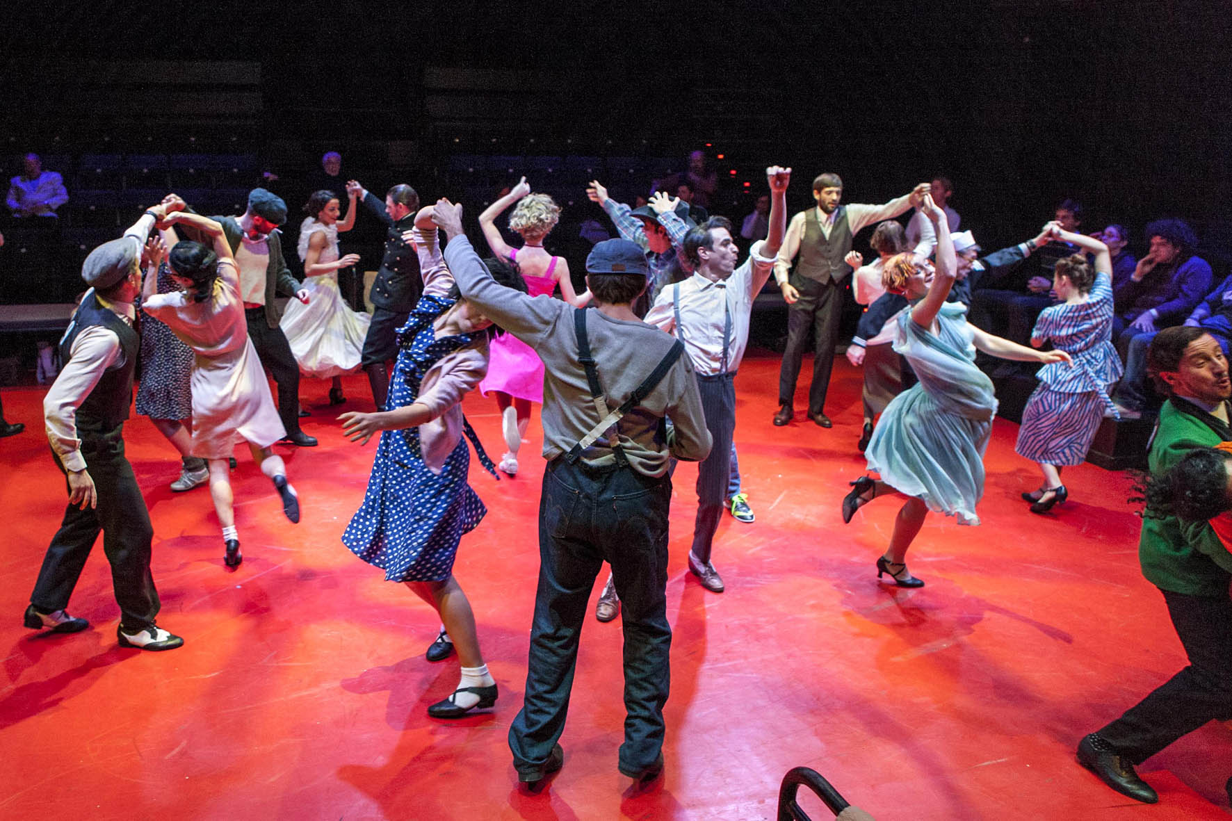 Ecco ora un’altra versione del crudele show, ma in una messinscena decisamente più teatrale dove l’allusione è ai tanti odierni reality e talent show televisivi e a quel “sogno di farcela” a tutti i costi, arrivando a rinnegare persino la propria dignità e intimità. A firmare la messinscena – che dispone gli spettatori su tre gradinate che circondano la pista-balera con tanto di piccola orchestra e cantante –, è il regista Gigi dall’Aglio, insieme alla determinante scrittura fisica di Michela Lucenti.