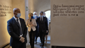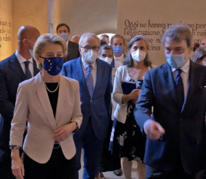 Castagnetti tra Sassoli e von der Leyen a Fossoli 11 luglio 2021 foto Fondazione Fossoli