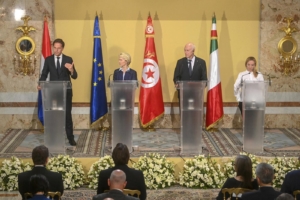 Il 16 luglio le foto di agenzia hanno riportato l’immagine degli artefici del Memorandum di Tunisi, firmato nel sobborgo marittimo di Cartagine. Accanto all’austero presidente tunisino Kais Saied, compaiono sorridenti la presidente della Commissione europea Ursula von der Leyen, il premier olandese Mark Rutte e la presidente del Consiglio Giorgia Meloni.