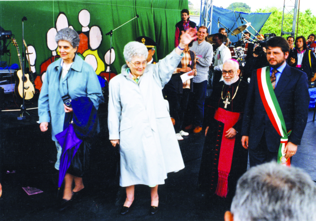 Chiara Lubich e Mons. Francesco Saverio Toppi al 18° Meeting dei Giovani di Pompei. Foto dell’archivio fotografico del santuario di Pompei.