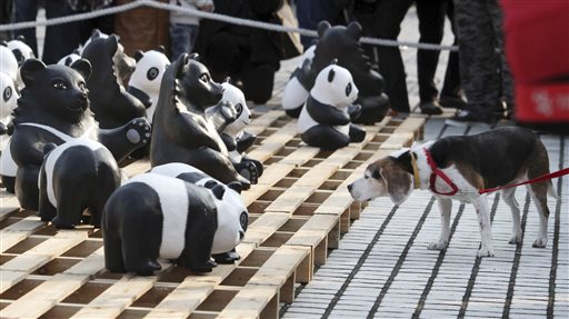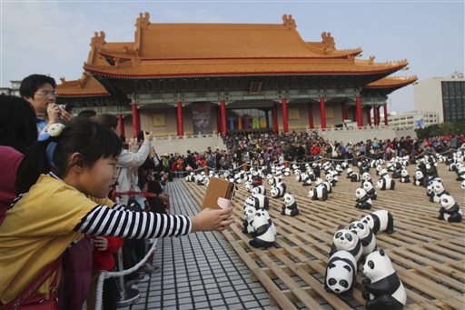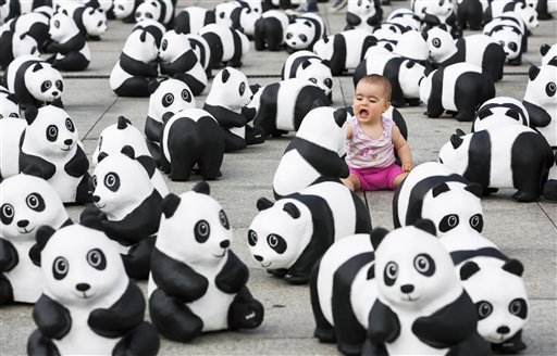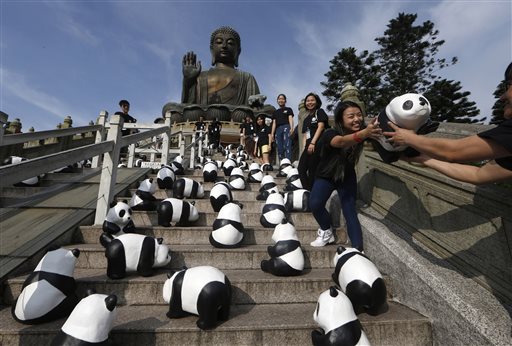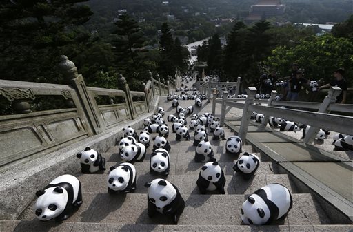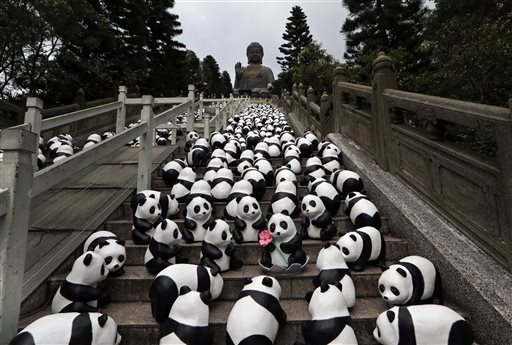 L’artista francese Paulo Grangeon, in collaborazione col Wwf, prosegue la sua opera itinerante attraverso le maggiori città dell’Asia per sensibilizzare le persone alla rapidità dell’estinzione del panda. 1600 panda di cartapesta a simboleggiare gli altrettanti esemplari lasciati allo stato brado nel mondo e quindi in pericolo. Nelle foto (Ap) i panda a Hong Kong, in Germania e a Taipei.