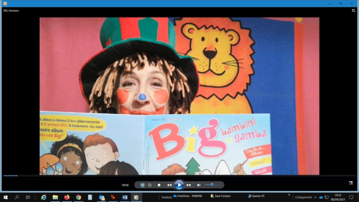 Biancarosa Chiarandini, in arte Mago Birillo, legge il racconto del giornalino Big Bambini in gamba “Che pasticcio nel regno dei giochi”.