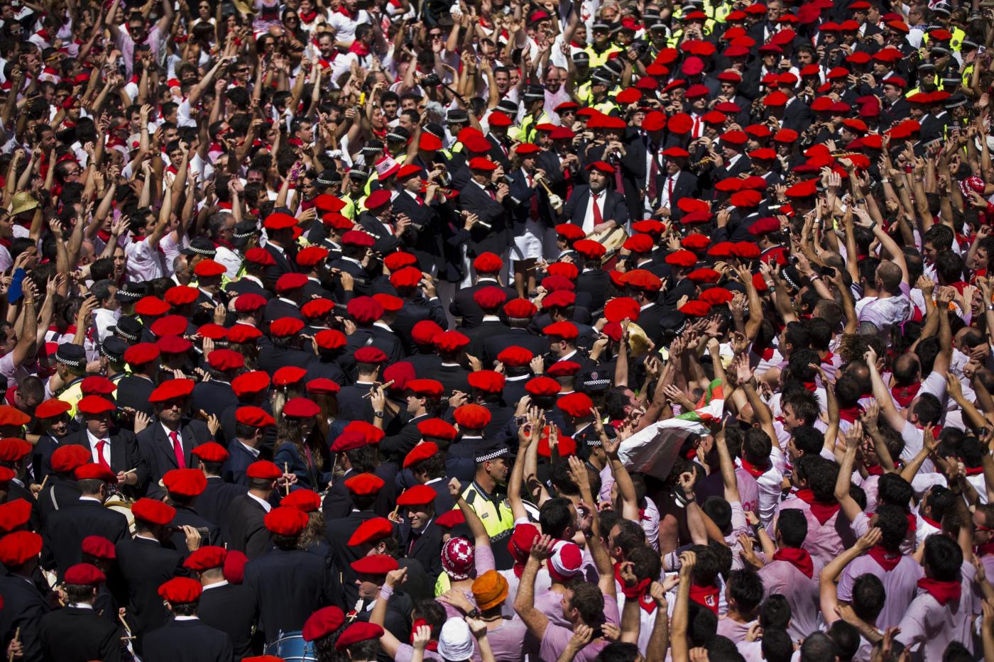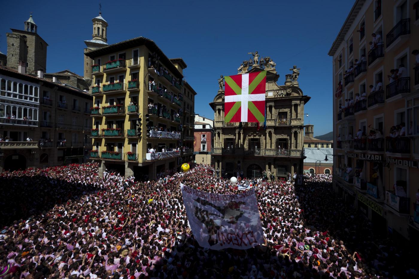 È cominciata a Pamplona la tradizionale festa di San Firmino, contestata dagli animalisti, che si concluderà dopo otto giorni di baldoria il 14 luglio. L'imperativo è divertirsi e… sfuggire alle cornate dei tori (foto LaPresse).