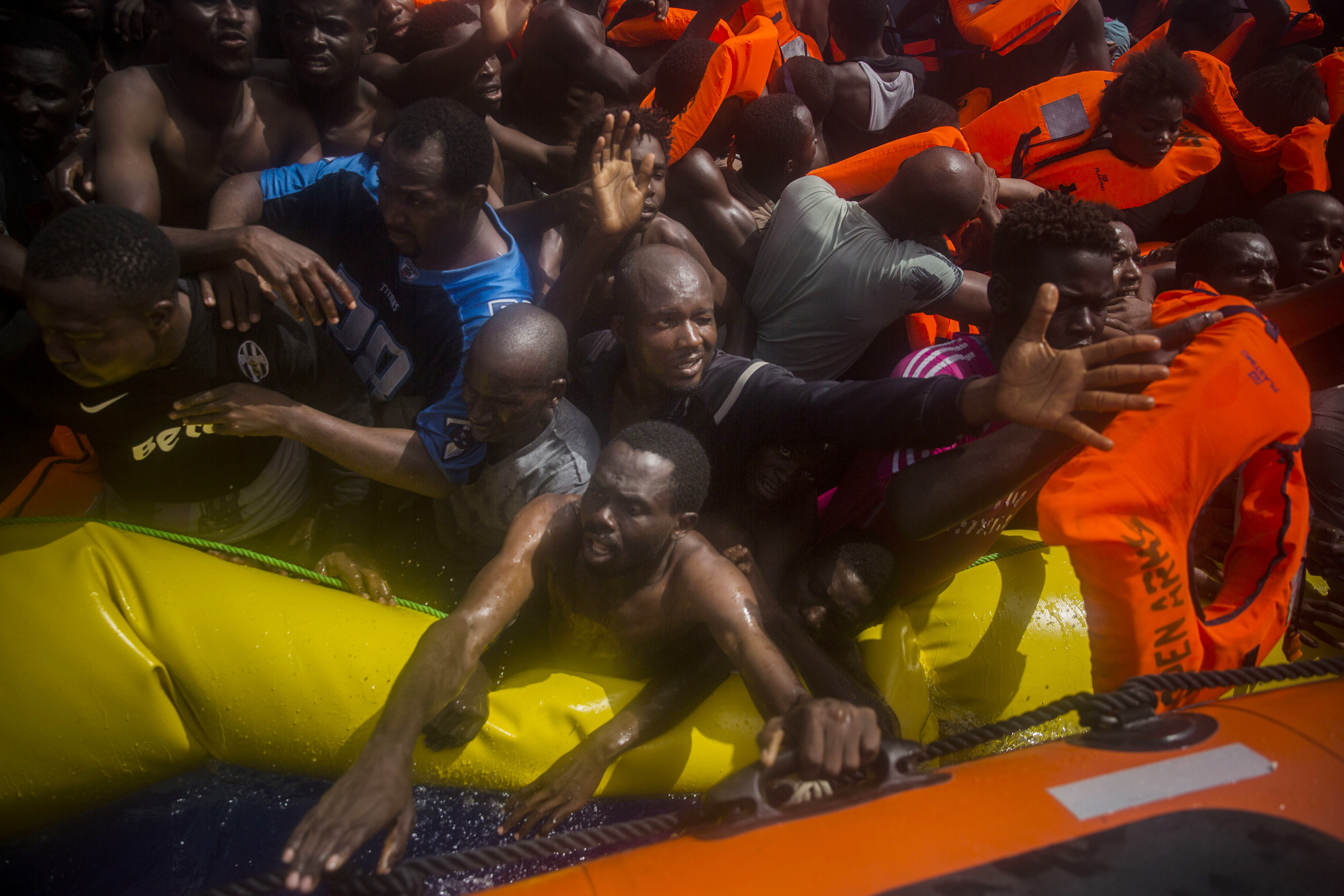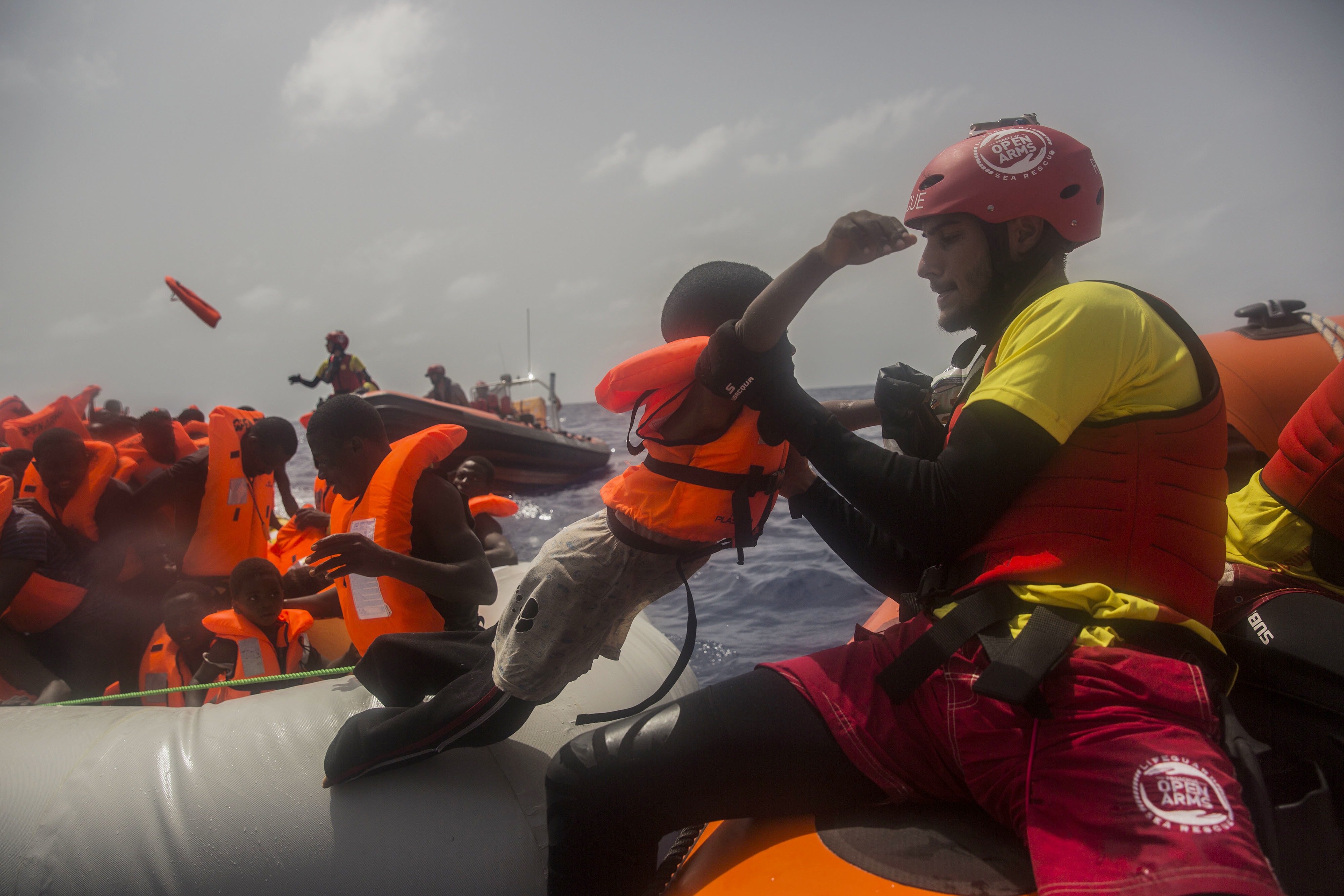 Come compensazione all’attivismo diplomatico francese, il presidente del consiglio Gentiloni è stato contattato da Fajez al Sarraj dopo l’incontro inaspettato a tre che ha avuto con Haftar e Macron, per chiedere l’aiuto navale italiano in acque libiche «contro i trafficanti di esseri umani». Una proposta che apre interrogativi su quella che potrebbe preparare un intervento militare di sostegno ad un blocco navale più volte auspicato da parte delle forze politiche che parlano con allarme di un’invasione in corso da parte di flussi di migranti senza controllo dall’Africa subsahariana. Nelle immagini Ap alcune fasi di salvataggio nel Mar Mediterraneo da parte della Ong spagnola Proactiva Open Arms.