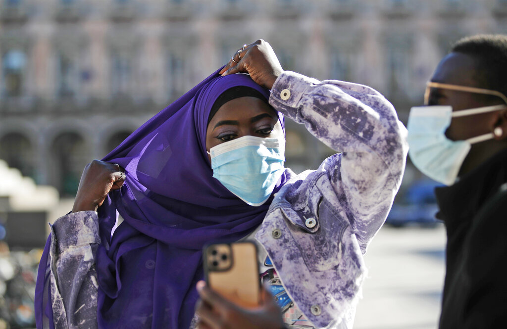 Aida Diouf Mbengue, 19 anni e proveniente dal Senegal, si sta facendo un nome nei social. L’Afro-Influencer, che indossa l’hijab, si è messa insieme ad un gruppo di giovani di origine africana, che vivono in Italia, per cercare di aumentare la propria visibilità e influenza nei social media. (AP Photo / Antonio Calanni)