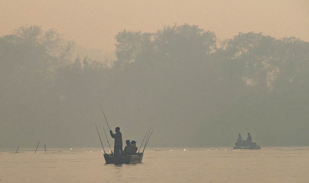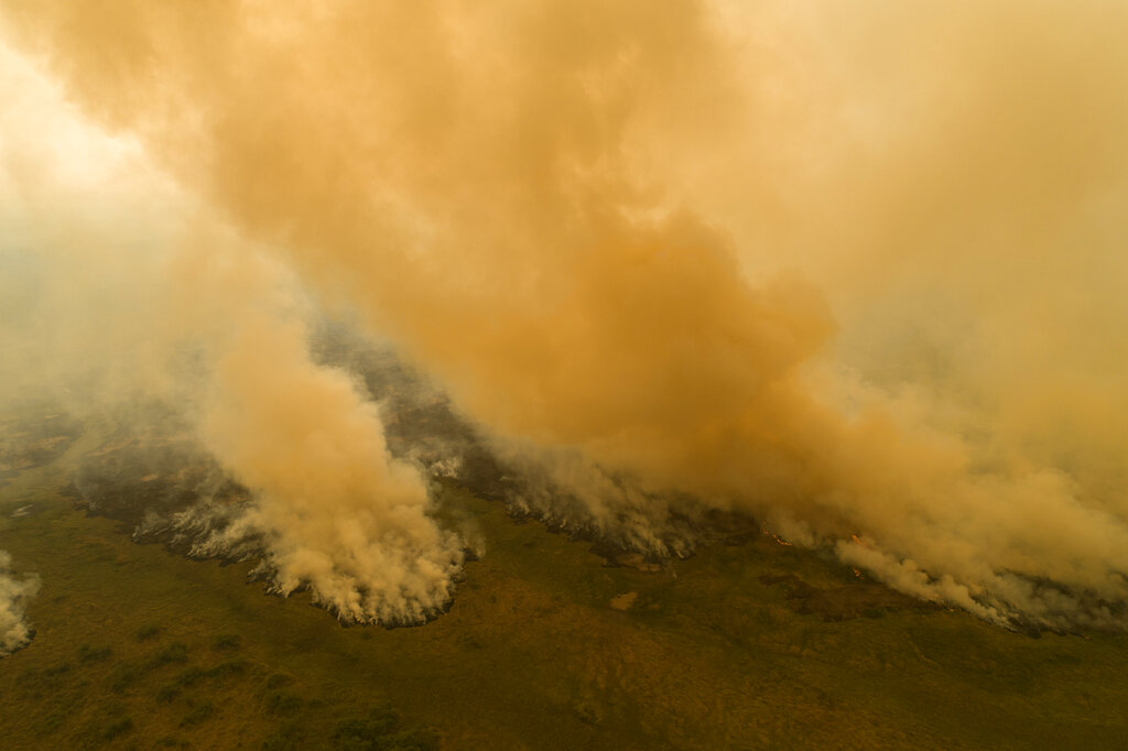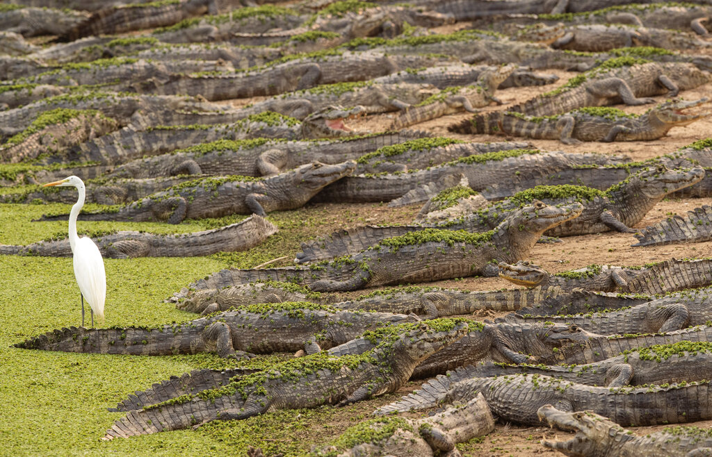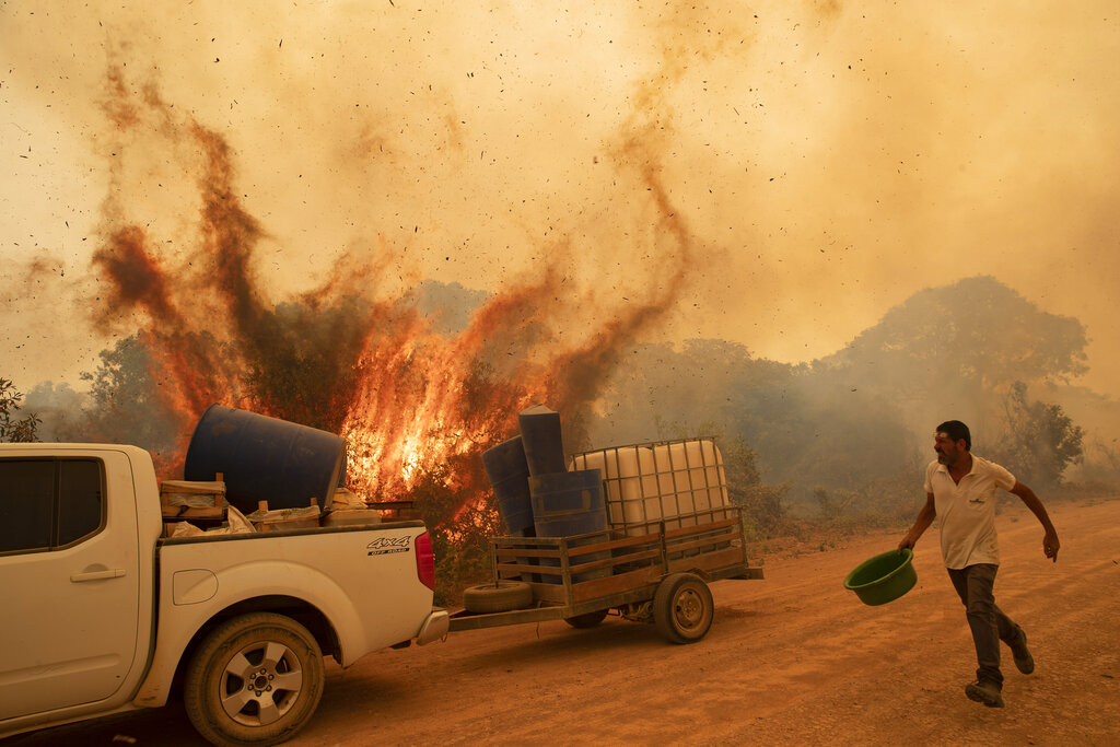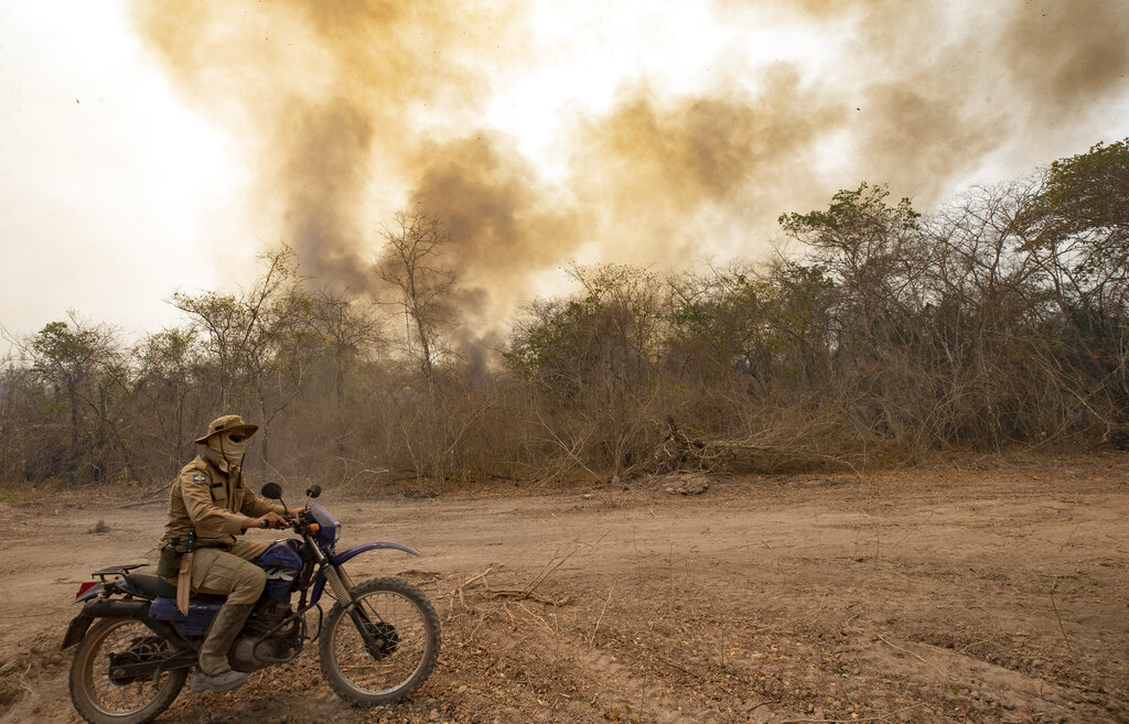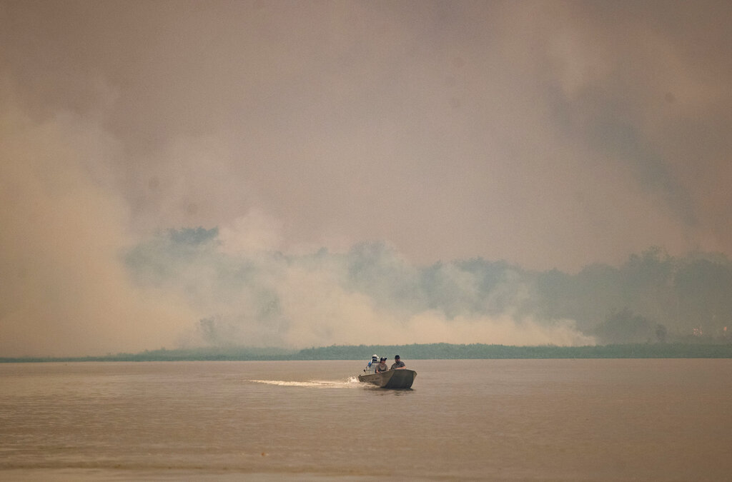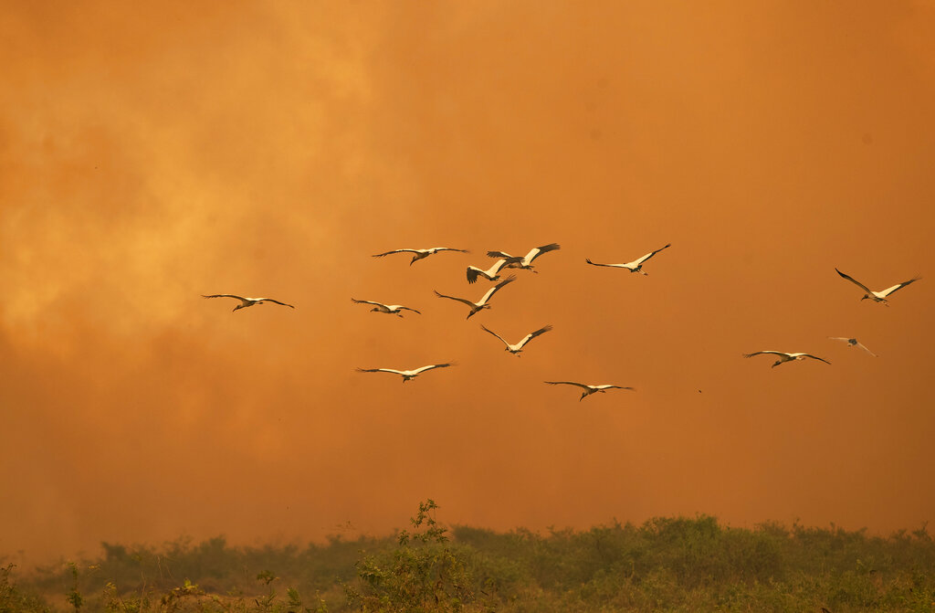 Uccelli, alligatori, giaguari e altri animali sono in fuga dal fuoco che sta devastando vaste zone del Pantanal brasiliano (stato del Mato Grosso). È una delle più grandi zone umide tropicali del mondo. Il numero di incendi nella prima metà del 2020 è più che raddoppiato rispetto allo stesso periodo dello scorso anno, secondo i dati diffusi da un istituto statale. Diversi parchi nazionali sono nei guai, col sole oscurato dal fumo denso. (AP Photo/Andre Penner)
