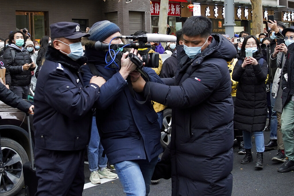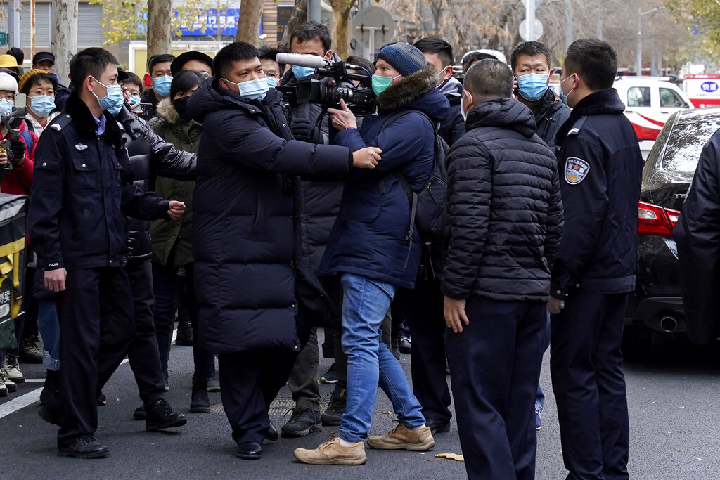 Giornalisti stranieri sono stati bloccati dai poliziotti cinesi mentre cercavano di filmare Zhou Xiaoxuan fuori da un tribunale a Pechino. Zhou è la donna cinese che ha intentato causa per molestie sessuali contro un conduttore della TV di stato. Il processo inizierà mercoledì nella capitale dopo più di due anni di attesa. Zhou spera che il suo caso incoraggi altre vittime di violenza di genere, tenuto conto che il sistema cinese offre loro poche opzioni per portare avanti le denunce (AP Photo / Andy Wong)
