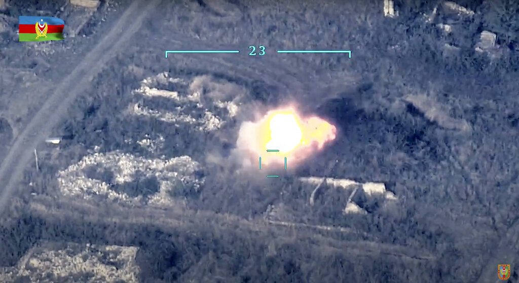 Vanno avanti i combattimenti tra Armenia e Azerbaigian. Sono 39, per ora, le persone uccise, secondo una nota ufficiale del ministero della Difesa della provincia secessionista del Nagorono-Karabah. La regione è internazionalmente riconosciuta come parte dell’Azerbaigian ma controllata dagli armeni. Le foto ritraggono soldati in guerra e cittadini nascosti in rifugi antiaerei (Azerbaijan’s Defense Ministry; Armenian Foreign Ministry via AP).