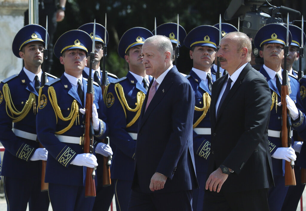 La Turchia, Paese appartenente alla Nato, sostiene l’Azerbaigian nel contenzioso per il controllo della regione del Nagorno-Karabakh che ha generato due guerre recenti con la sperimentazione di nuove armi particolarmente micidiali come i droni kamikaze usate dagli azeri su licenza delle aziende turche.