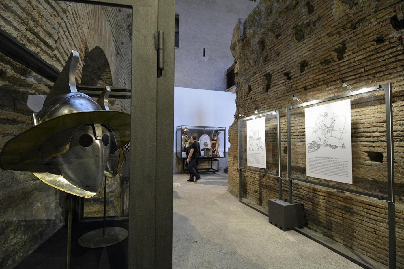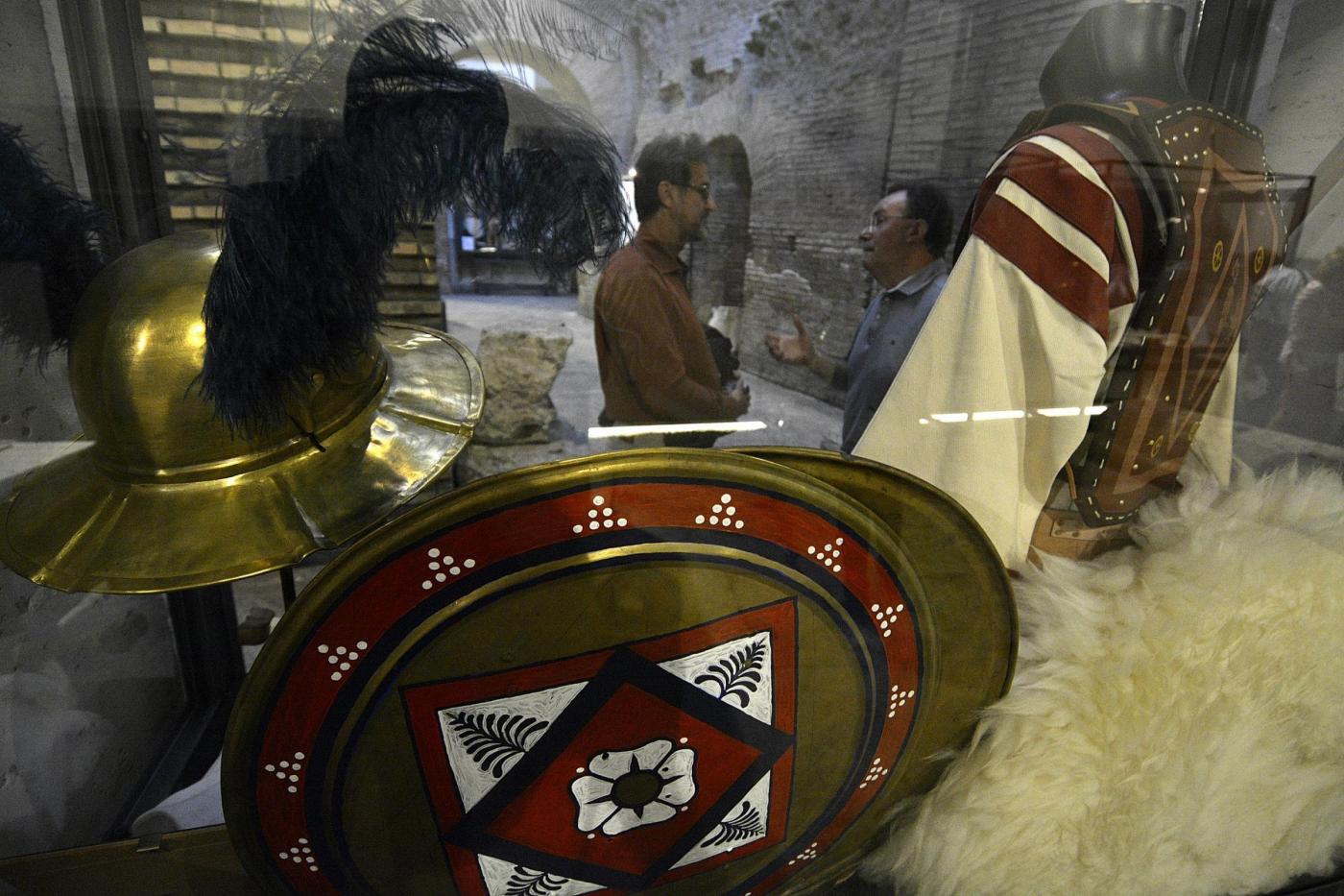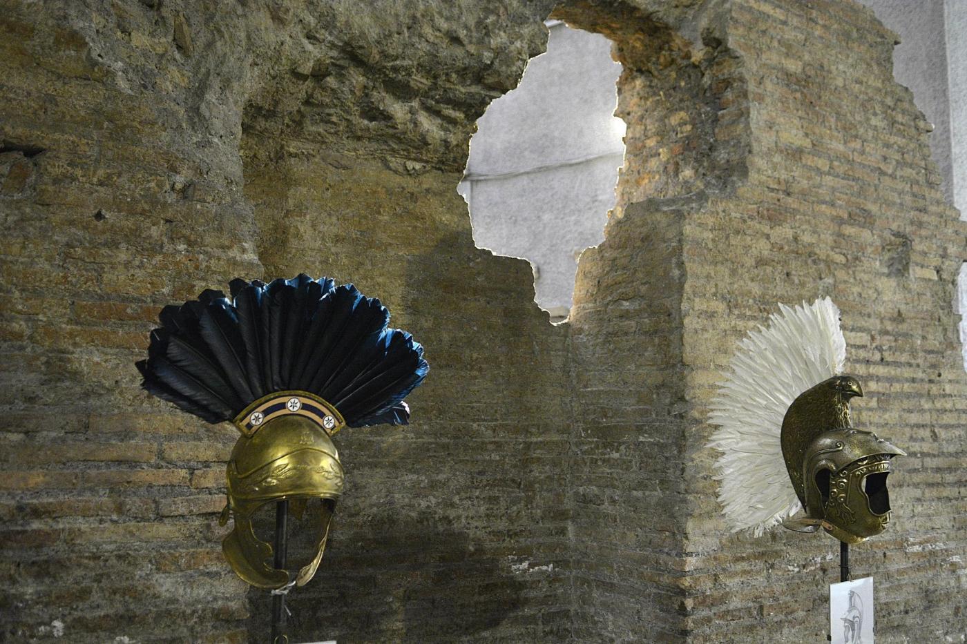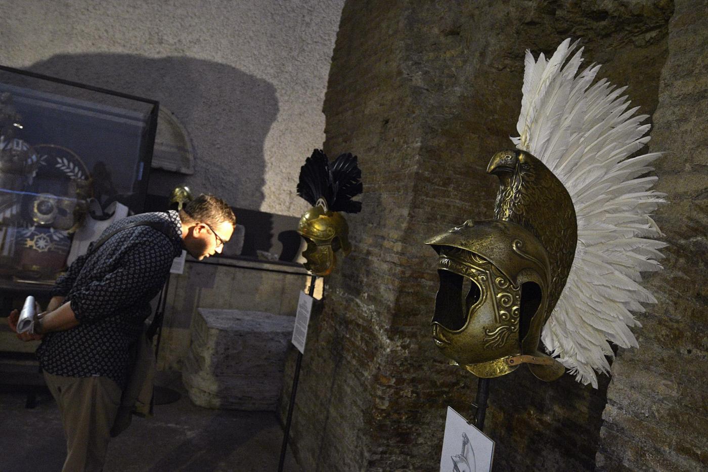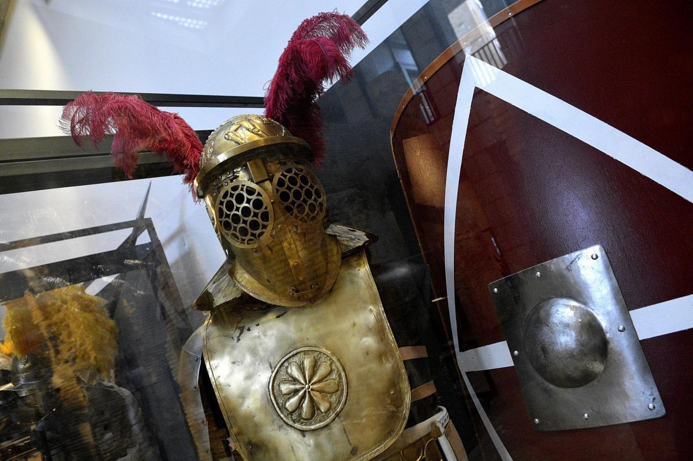 È stata inaugurata a Roma la mostra “Gladiatores e agone sportivo” che ripercorre la storia dell’armamento gladiatorio dal IV secolo a.C. fino all’inizio del II secolo d.C.. Sotto piazza Navona, lo stadio di Domiziano, recentemente riaperto al pubblico, offre lo spazio espositivo nell’area archeologica per corazze, elmi, spade, scudi, schinieri, cinture, cingula, maniche di protezione e molto altro ancora (foto LaPresse).