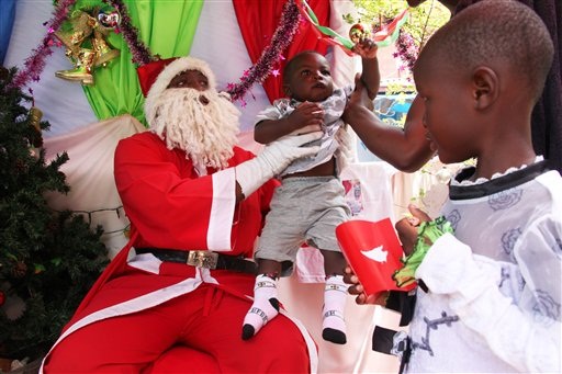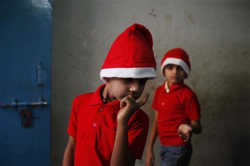Pierre Frolla si immerge vestito da Babbo Natale a Monaco. Un artigiano intaglia statuine di Gesù Bambino a Betlemme. La chiesa del penitenziario di Sioux Falls, Sud Dakota. Natale in India. Foie gras (fegato grasso) da preparare per il menu di Natale, Francia. Zimbabwe.